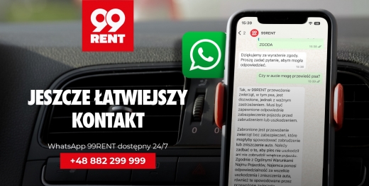 Masz pytanie o wynajem albo dostępność auta? Napisz wtedy, kiedy Ci wygodnie - Whatsapp 99RENT jest dostępny 24/7